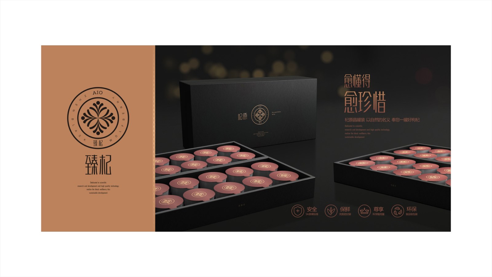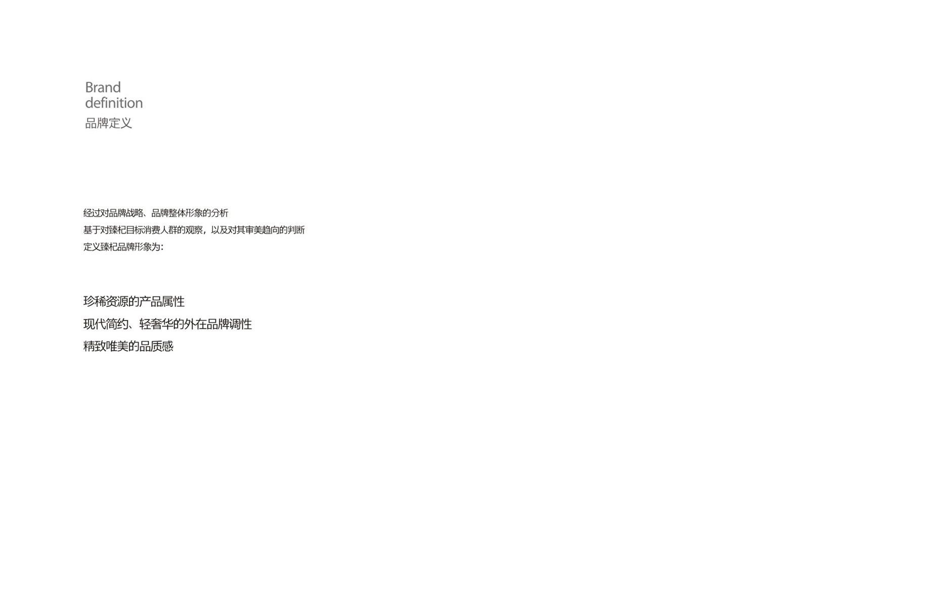 智圓行方團隊經過對品牌戰略(luè)、品牌整體形象分析,基(jī)於對臻杞目標人群的觀察,以及對其審美趨向的(de)判斷,定義臻杞品牌形象為:珍稀資源的產品屬性現代簡約、輕奢的外在品牌調性精致唯美的(de)品質感。